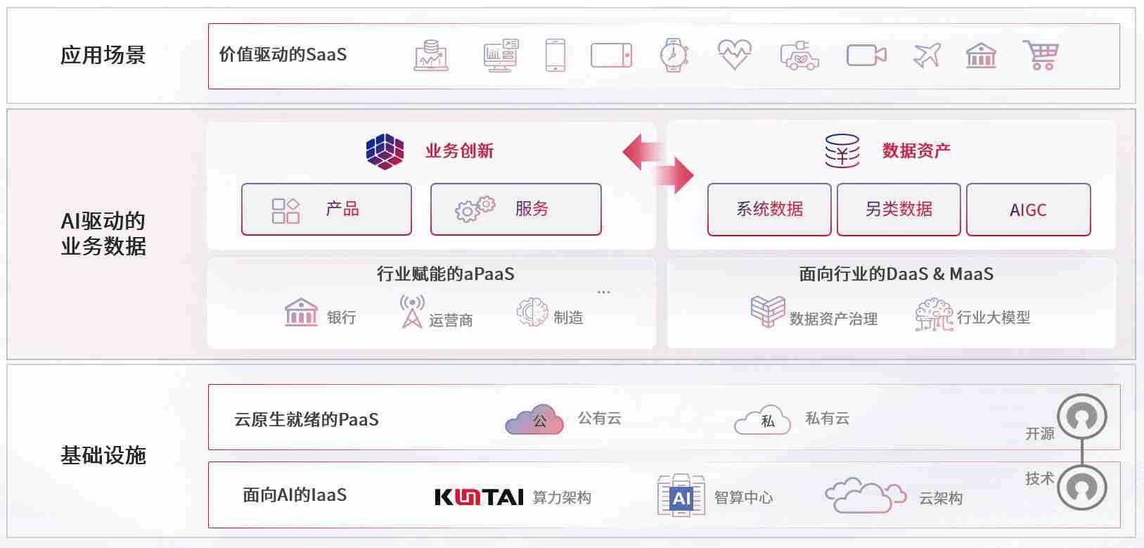 数字时代,,,,围绕企业数字化转型的关键要素,,人生就是搏数码开创性的提出数云融合战略和技术体系框架,,,,着力在云原生、、、、数字原生、、AI原生和信创产业上架构产品和服务能力,,,为处在不同数字化转型阶段的快消零售、、、、汽车、、、、金融、、医疗、、政企、、教育、、运营商等行业客户提供泛在的敏捷IT能力和融合的数据驱动能力,,,,构建跨界融合创新的数字业务场景和新业务模式,,助力企业级客户建立面向未来的核心能力和竞争优势,,,,全面推动社会的数字化、、、、智能化转型升级。。